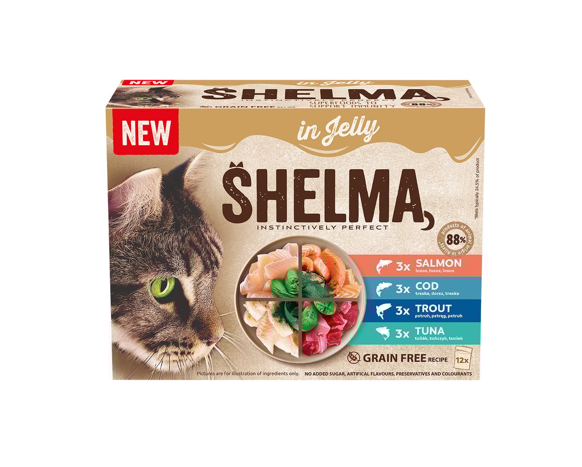 Pokud chcete kočce připravit opravdu lahodné a zároveň zdravé Vánoce, sáhněte po krmivu Shelma. Jeho receptury staví na vysokém podílu masa, takže kočce doplní vše, co během dne skutečně potřebuje. Na svátky můžete zvolit novinku v podobě rybích kapsiček v želé, obsahující vysoký podíl masa a ryb bez přidaných obilovin. Vybírat lze z lososa, tuňáka, tresky či pstruha se špenátem a spirulinou pro podporu imunity. V balení najdete 12 kapsiček ve 4 příchutích, které můžete objednat například na rohlik.cz. Více najdete na www.shelma.cz.
