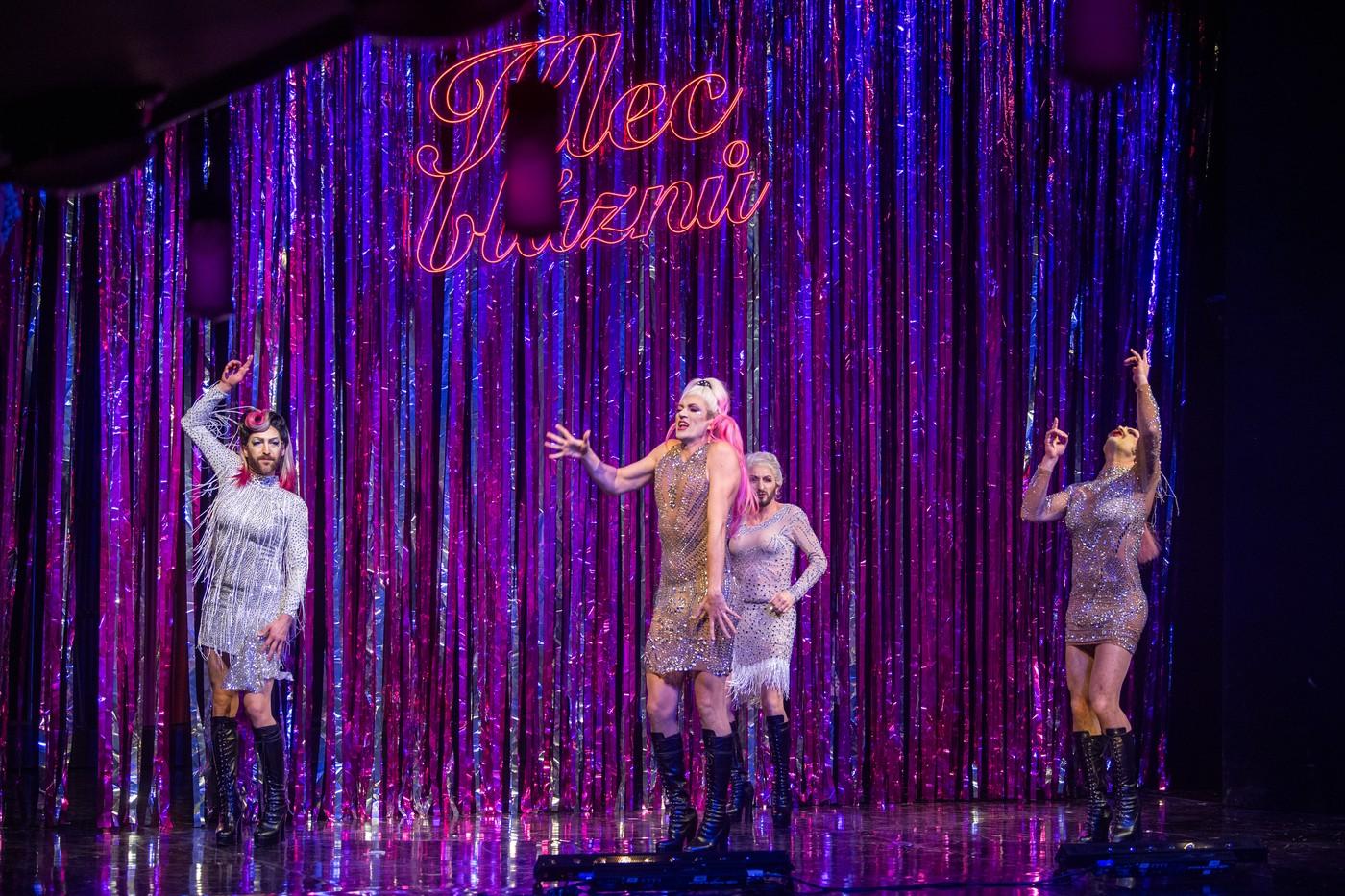 Představení se podle dramaturgyně Jany Uherové vyprodalo během chvilky. Když hru viděla na domovské scéně divadla, věděla, že ji chce zařadit do soutěže. Francouzská kultovní komedie v sobě nese prvky drag show a je oslavou svobody sebevyjádření. Hru režíroval Daniel Hrbek, ředitel Švandova divadla.