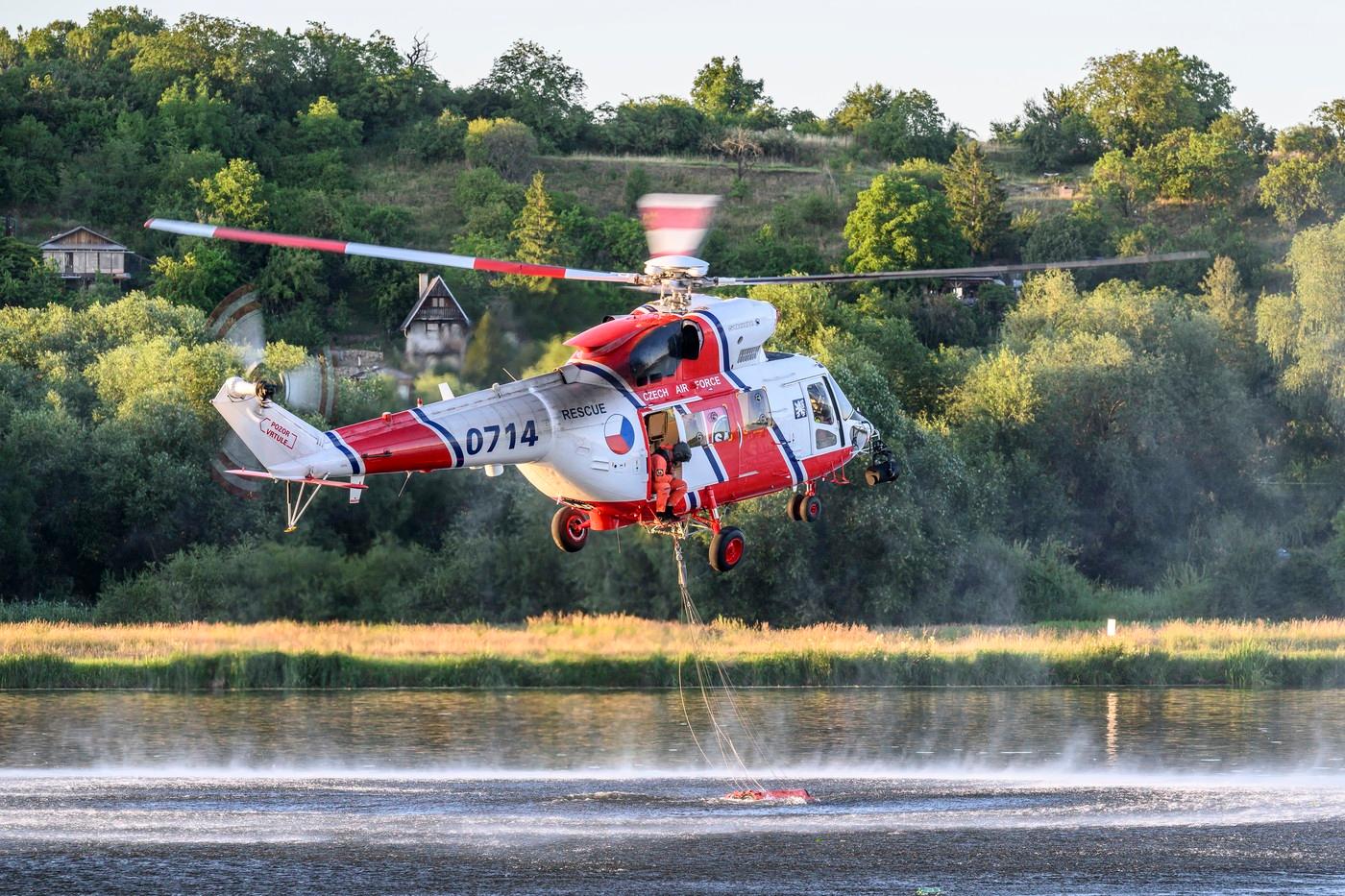 Hasiči kvůli explozím z bezpečnostních důvodů zasahovali většinou jen ze vzduchu. Vojáci na místo podle Dvořákové poslali svůj vrtulník W-3A Sokol s bambivakem, na pomoc dorazila ze Zbirohu na Rokycansku také speciálně upravená vozidla hasičského záchranného útvaru Titus a Titan s balistickou ochranou, určená na zásahy v náročných podmínkách. Později ze Zbirohu na Litoměřicko vyrazil také vyprošťovací tank. "Vytvoří proluky v lesním porostu, a usnadní tak cisternovým zodolněným stříkačkám provádění hasebních prací a volný průjezd terénem," informoval večer hasičský záchranný útvar. Hasiči využili také drony s termokamerou.