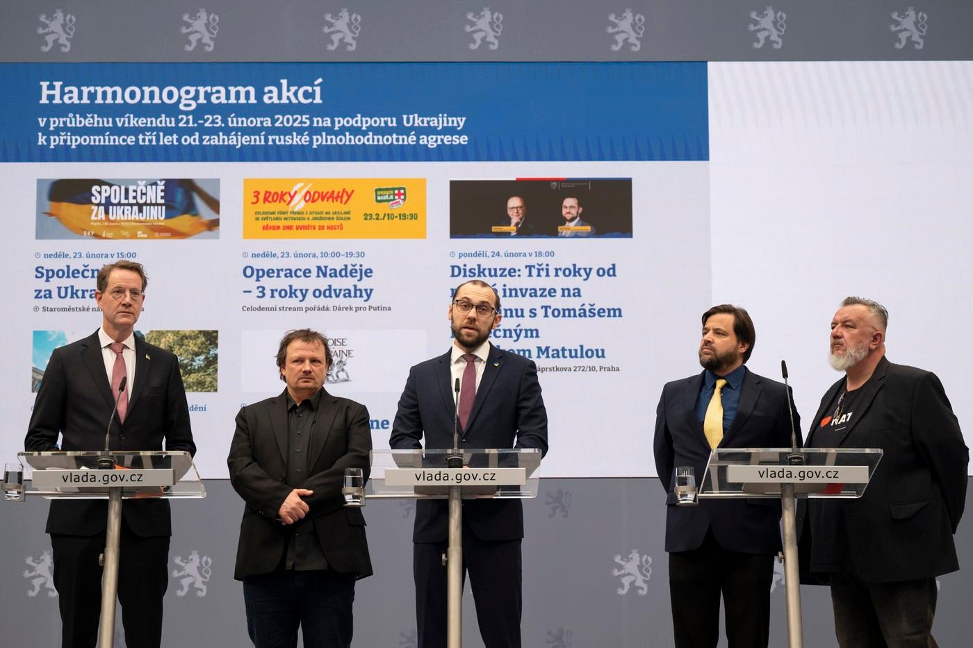 K třetímu výročí ruské invaze na Ukrajinu, které připadá na pondělí 24. února, se v České republice uskuteční desítky akcí. Například se jedná o nedělní shromáždění na Staroměstském náměstí nebo pondělní hudební akci u budovy ruského velvyslanectví v Praze. Na dnešní tiskové konferenci akce představili vládní zmocněnec pro rekonstrukci Ukrajiny Tomáš Kopečný, zástupci organizací a pořadatelů.