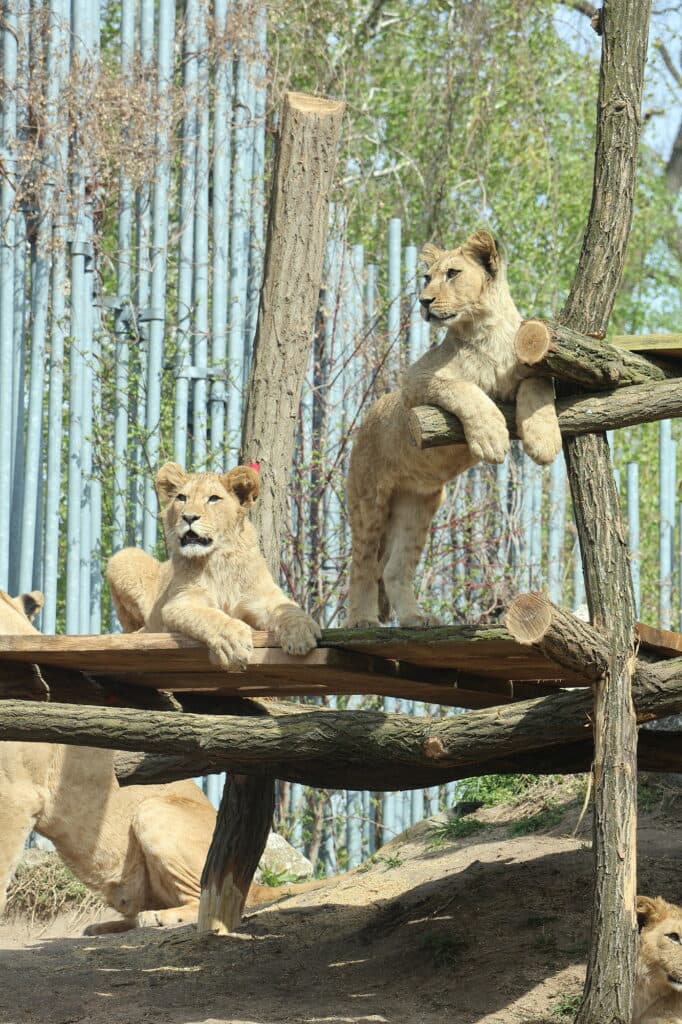 Lvi berberští v Zoo Hodonín mají ve venkovní expozici novou atrakci, asi 2,5 metru vysokou čtyřpatrovou palandu. Po nesmělém začátku ji už pravidelně využívají. Na webu zoo o tom informoval mluvčí zařízení Ivo Cencinger.