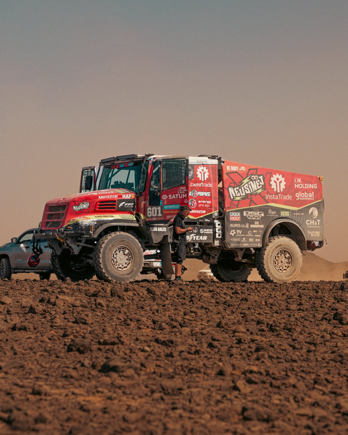 Účastníci slavné rallye dnes v Saúdské Arábii absolvovali etapu s 61 km dlouhou rychlostní zkouškou, do které nově startovali hromadně. Macík, Loprais, Van den Brink a Litevec Vaidota Žala tak vyrazili na trať společně. Loprais se snažil útočit, ale Van den Brink i Macík kontrolovali své pozice. Nakonec Loprais porazil nizozemského soka o deset sekund, Macík dojel téměř o čtyři minuty zpět.