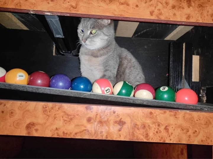 „Ona má místečko támhle v rohu pod televizí, nebo támhle u okna, ale někdy si ustele na kulečníku nebo i uvnitř něj,“ popisuje se smíchem barmanka Věra Křížová.