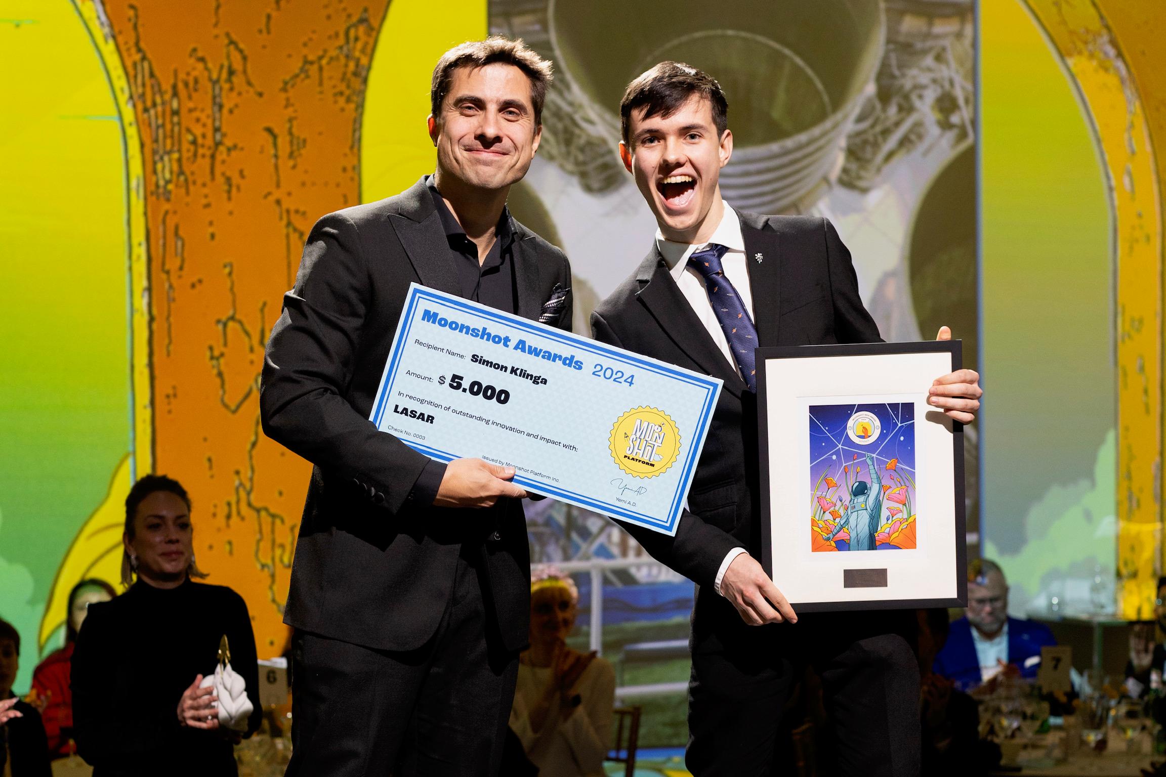 Moonshot Idea Award: Simon Klinga z České republiky za projekt LASAR. Laserem poháněný systém pro restartování družic, který bude testován na palubě Falconu9 společnosti SpaceX.