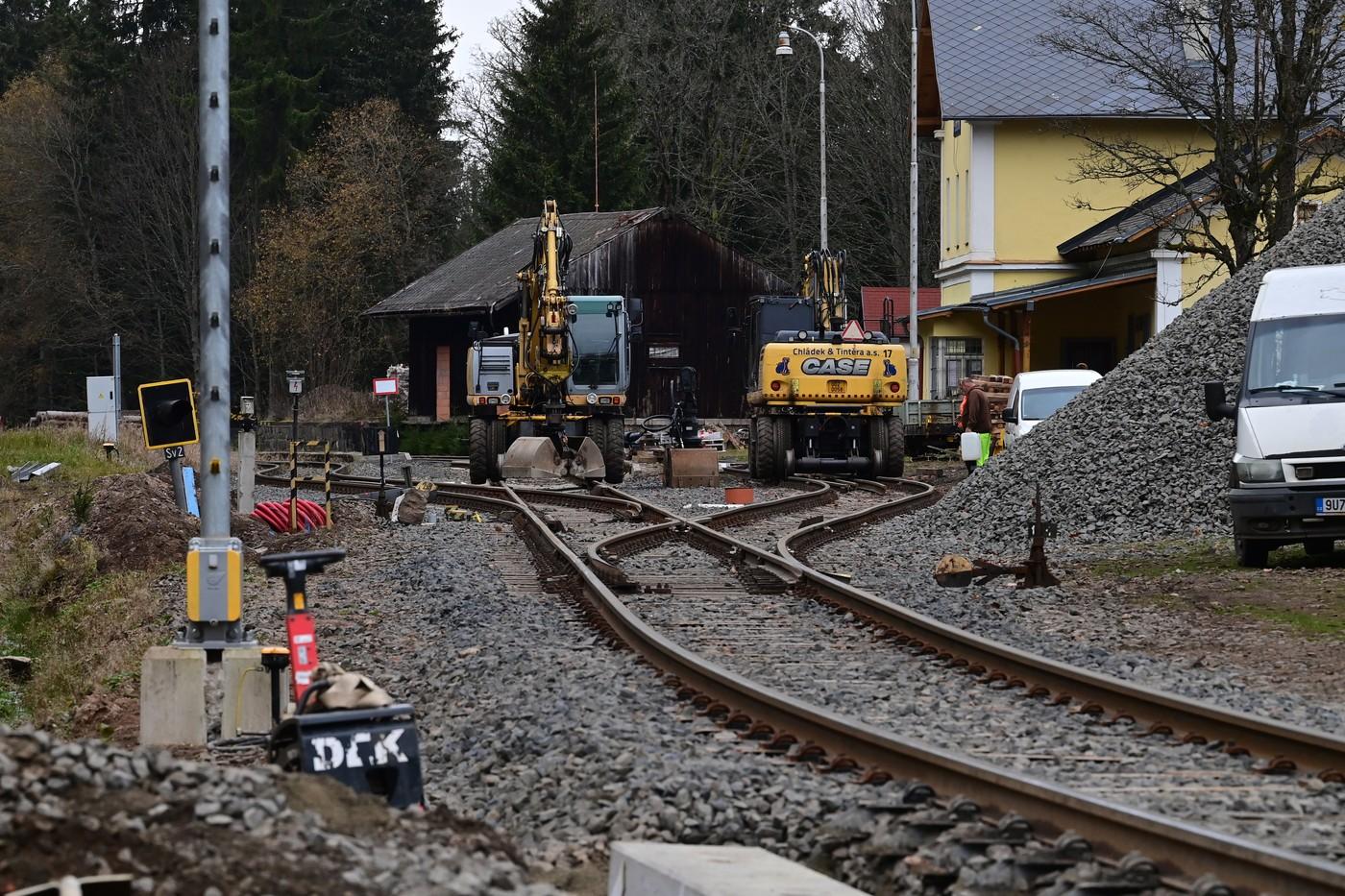 "Původní návrat vlaků na koleje na trati z Karlových Varů do Potůčků v úseku Nejdek - Pernink v polovině listopadu se o měsíc protáhl. Deštivé počasí totiž zkomplikovalo hutnění kolejového lože před položením kolejnic a na doporučení geotechnika byly tyto práce pozastaveny, než bude podloží méně podmáčené. Vliv na stavební náklady je ale minimální, protože situace nevyžadovala práce navíc," řekl Gavenda. Poprvé se termín dokončení posunul kvůli náročnějším výkopovým pracím pro odvodnění trati, jelikož část podloží byla oproti předpokladům skalnatější.