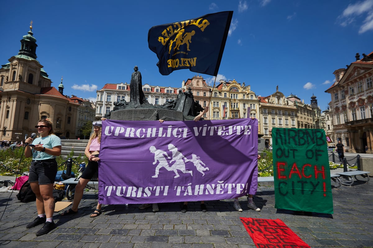 Několik desítek lidí dnes na Staroměstském náměstí v Praze protestovalo proti masovému turismu. Kritizovali, že turismus vyvíjí tlak na ceny bydlení. Akci pořádala organizace Kolektiv 115 a měla podobu fotbalového utkání mezi týmem Prahy a Airbnb. Protestující také zdůrazňovali, že zatímco miliony turistů míří do Prahy, pro desetitisíce uprchlíků a migrantů není v Evropě místo.