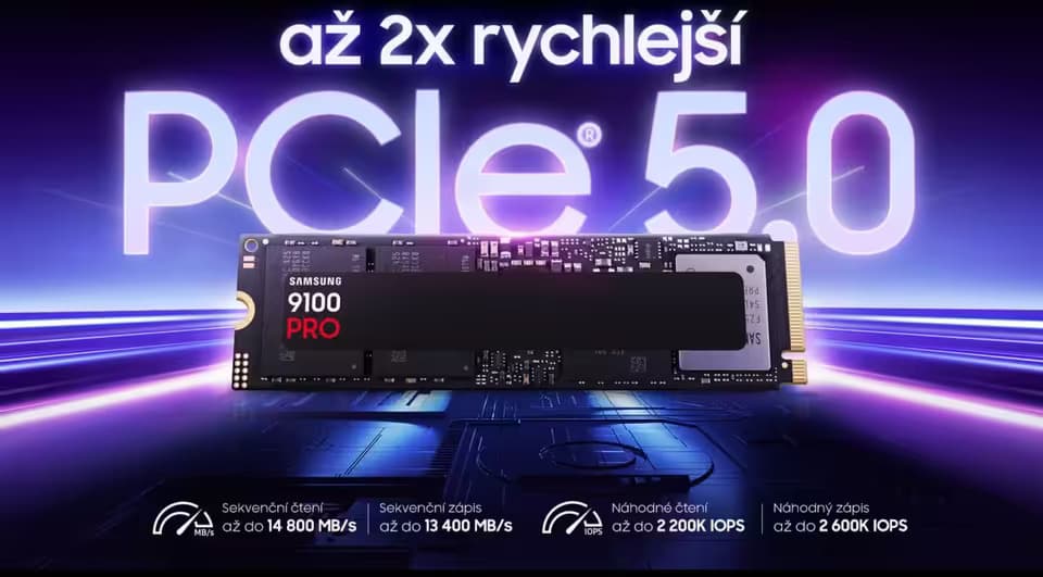 Jde o první spotřebitelské SSD od Samsungu s podporou rozhraní PCIe 5.0 a standardu NVMe 2.0. V praxi to znamená přenosové rychlosti, které téměř dvojnásobně překonávají předchozí generace, a celkové zrychlení systému, které je vidět i cítit okamžitě.
