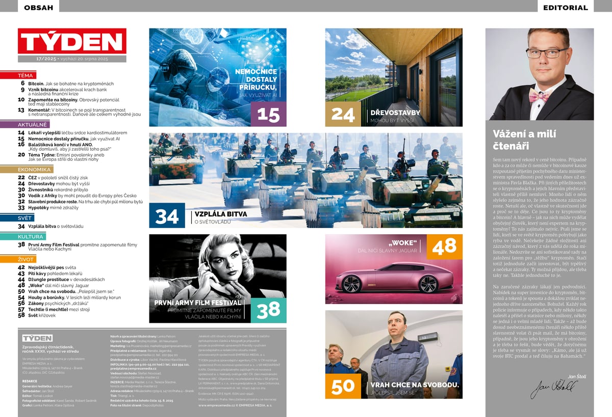 TÝDEN číslo 17/2025 k zakoupení ve vašich trafikách do 2. září. Časopis TÝDEN si můžete zakoupit i v elektronické verzi na digiport.cz