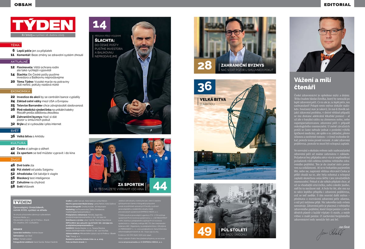 TÝDEN číslo 8/2025 k zakoupení ve vašich trafikách do 29. dubna. Časopis TÝDEN si můžete zakoupit i v elektronické verzi na digiport.cz