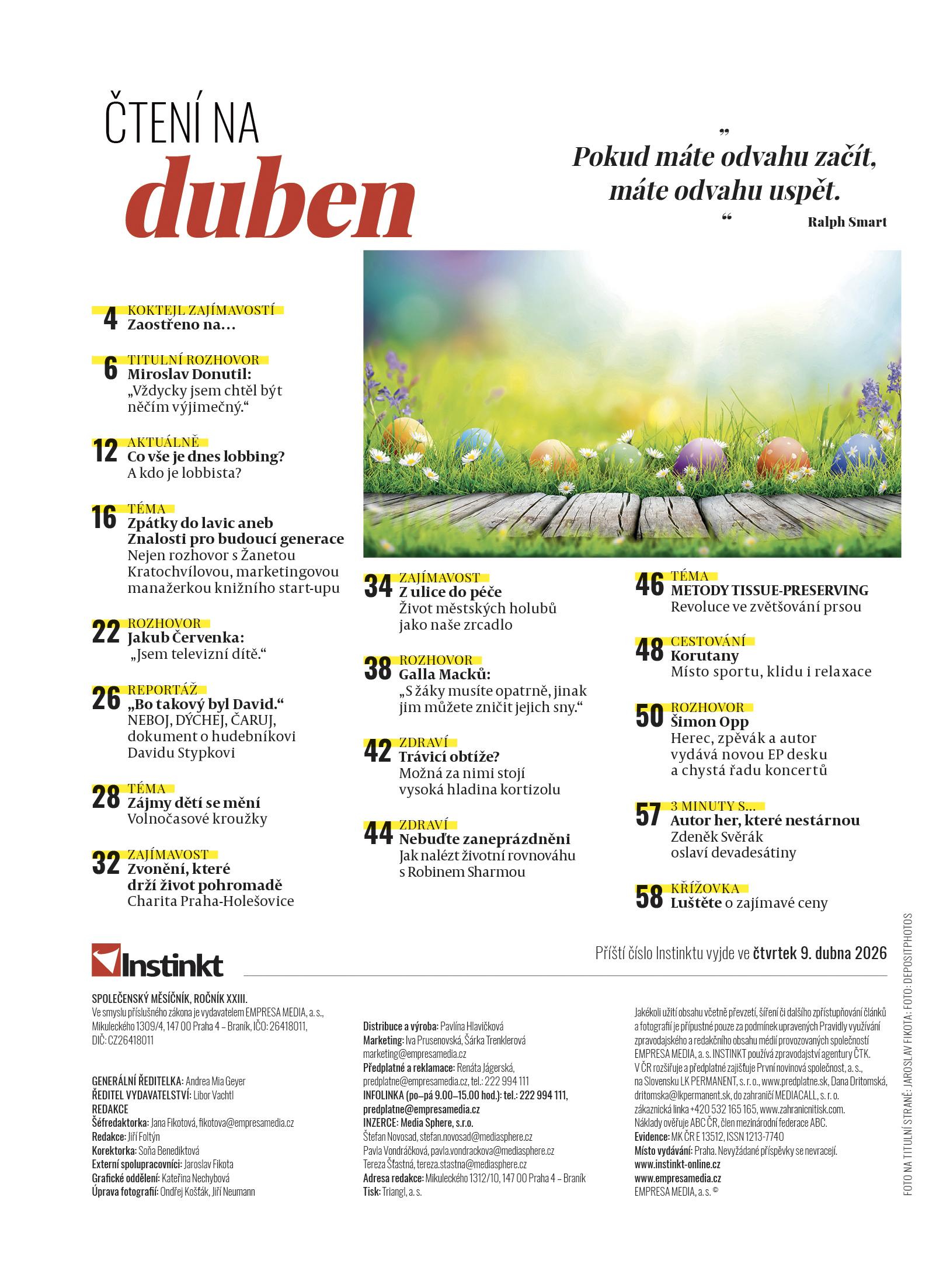 INSTINKT číslo 4/2026 je k zakoupení ve vašich trafikách do 8. dubna. Časopis Instinkt si můžete zakoupit i v elektronické verzi na digiport.cz
