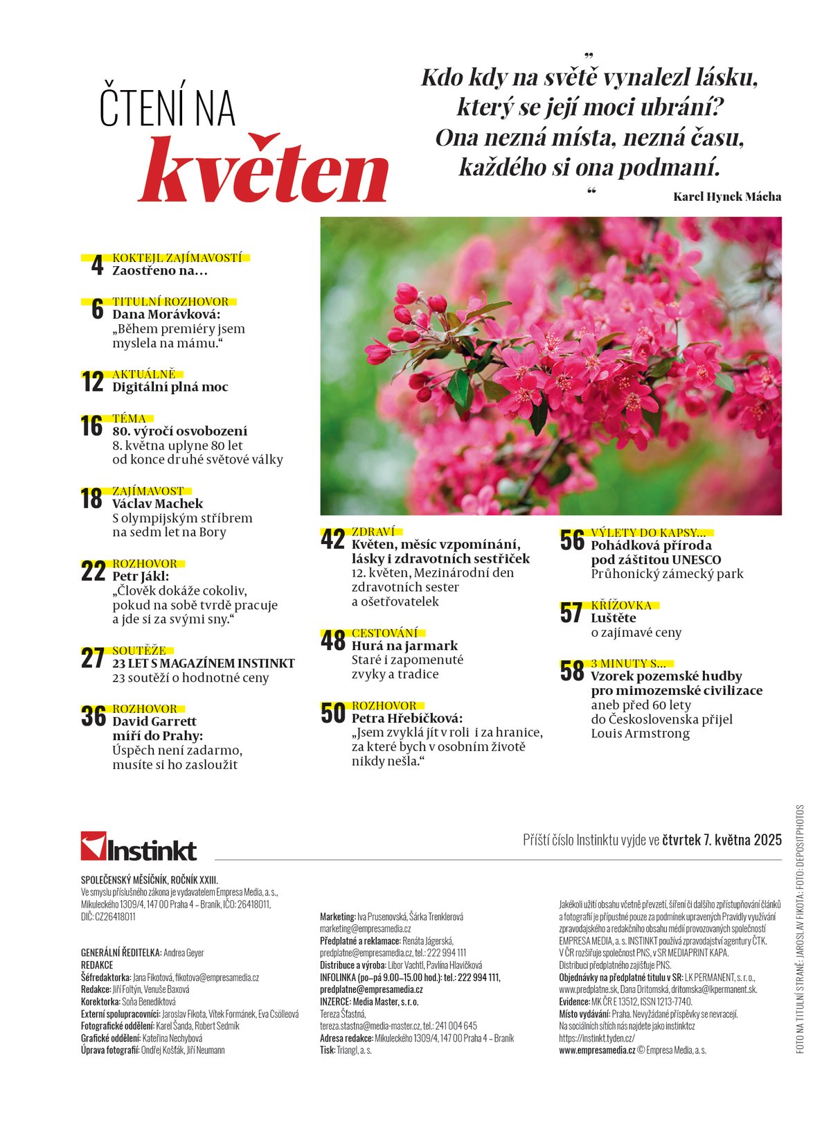 INSTINKT číslo 5/2025 je k zakoupení ve vašich trafikách do 6. května. Časopis Instinkt si můžete zakoupit i v elektronické verzi na digiport.cz