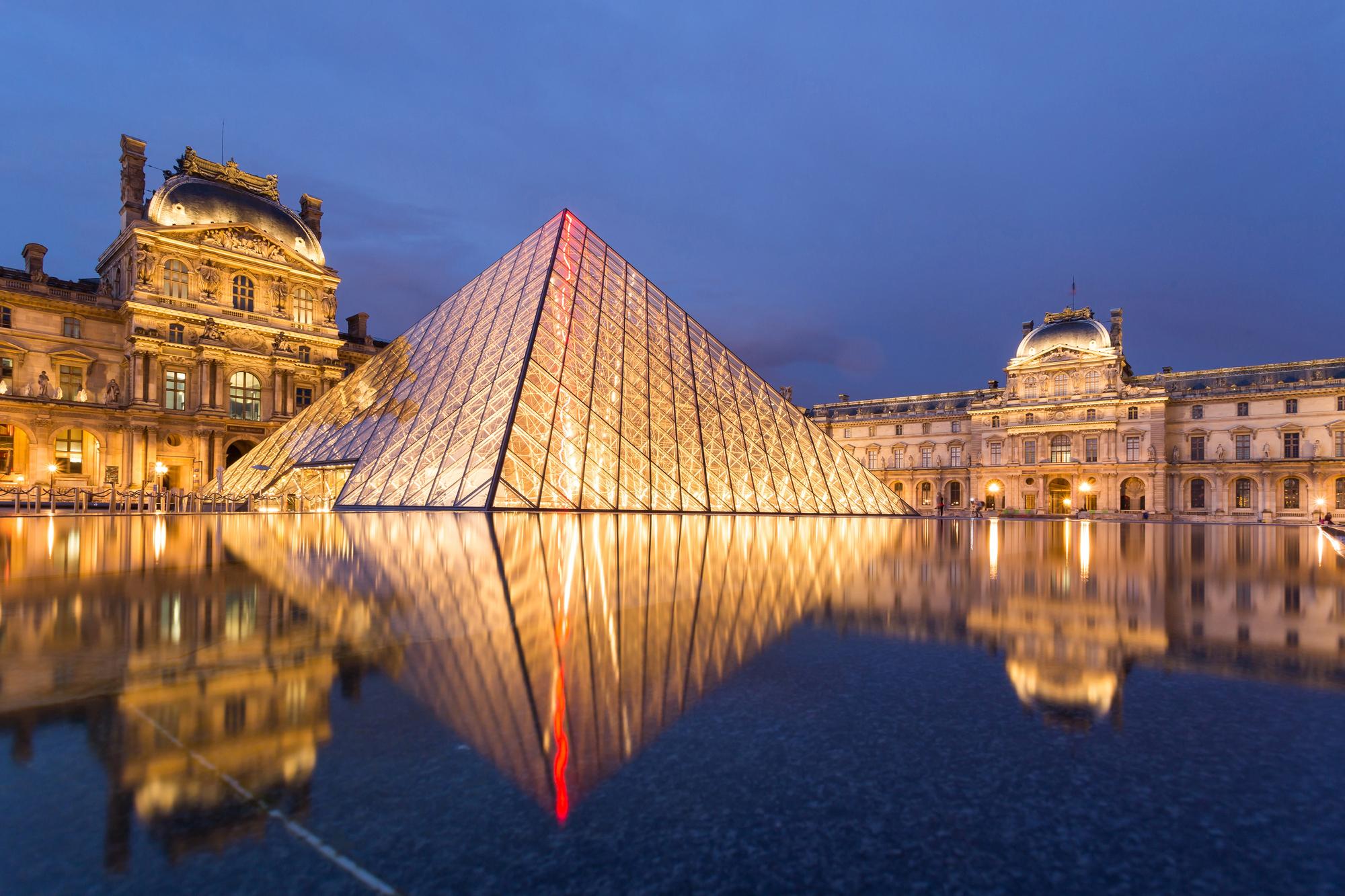 - Muzeum je známé nejen svými sbírkami - schraňuje přes 600.000 předmětů, z nichž je ale vystaveno jen přes pět procent -, ale také proslavenou skleněnou pyramidou od čínsko-amerického architekta Ieoha Minga Peie. Nynější vstupní prostor vznikl v éře prezidenta Françoise Mitterranda a dokončen byl v roce 1989. Byť v době jejího vzniku se stavbou nesouhlasilo na 70 procent Francouzů, stala se pyramida ze skla a oceli novým vstupem do Louvru. Otevřena byla v roce 1989 a dnes patří k nejznámějším stavbám Paříže, podobně jako třeba Eiffelova věž nebo katedrála Notre-Dame.