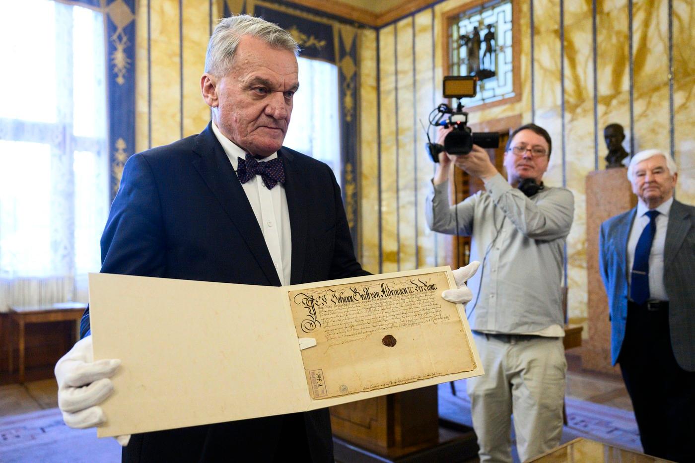 Primátor dnes převzal dva dopisy a jeden ochranný list z období třicetileté války. Z Prahy byly odvezeny za druhé světové války, kdy měl být Archiv hlavního města Prahy přetvořen na německý ústav. Celkem Prahu opustilo asi 100 cenných listin, které se vztahovaly k území tehdejší říše. Tři z nich byly nalezeny loni ve Státním archivu v Ambergu, Zemském archivu Badenska-Württemberska a v archivu šlechtického rodu Fuggerů.