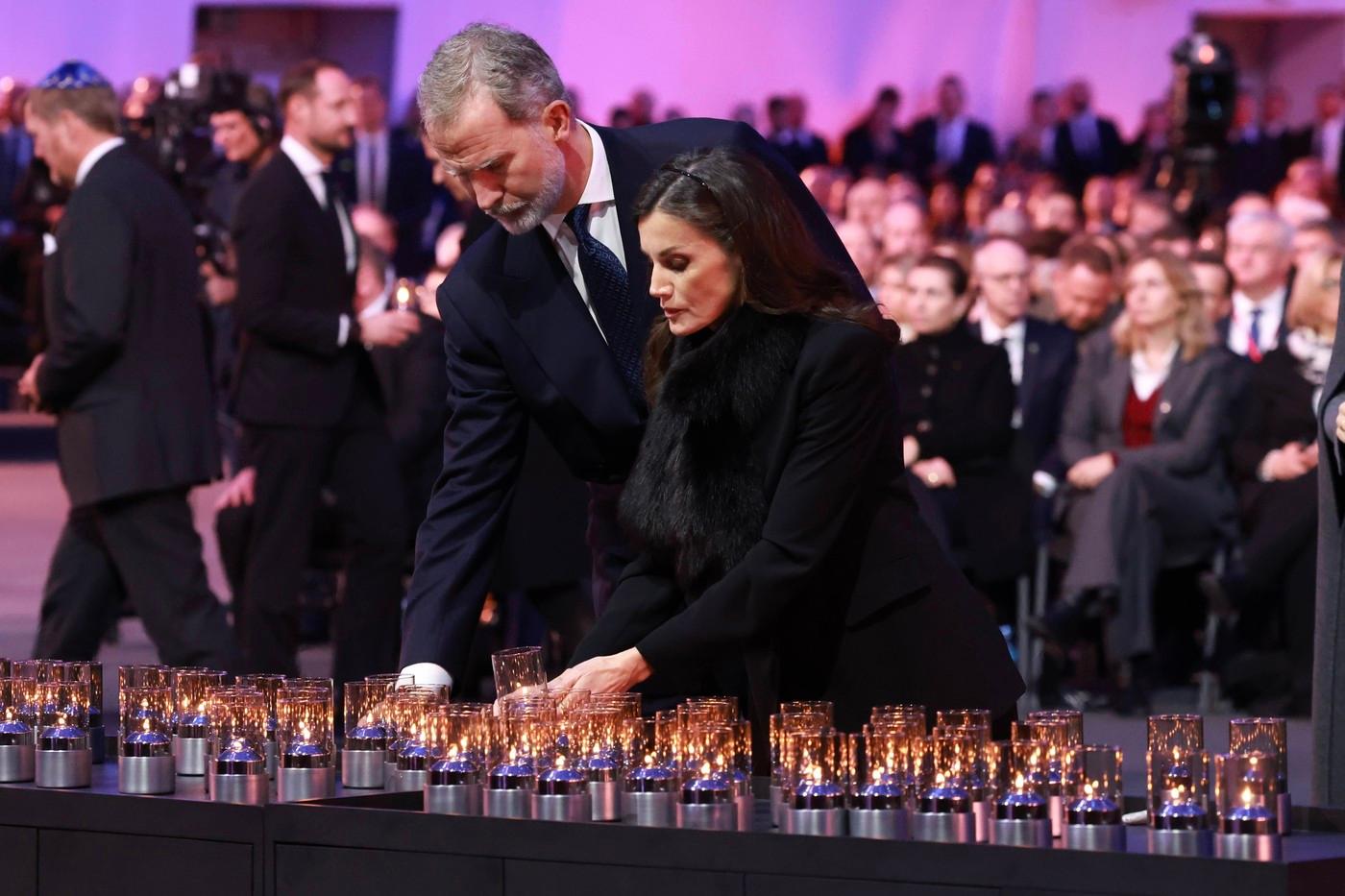 Přítomní státníci dnes podle plánu organizátorů pouze naslouchali pamětníkům a nedošlo na žádné jejich projevy. V závěru více než dvouhodinového ceremoniálu, po modlitbách pronesených zástupci rozličných náboženství od judaismu přes křesťanství po islám, se více než pět desítek státníků postupně poklonilo památce obětí a položilo svíčku před vagon symbolizující transporty. Ve chvíli, kdy takto vzdal hold ukrajinský prezident Volodymyr Zelenskyj, jehož země se téměř tři roky brání ruské agresi, se z řad přeživších osvětimských vězňů ozval hlasitý potlesk.