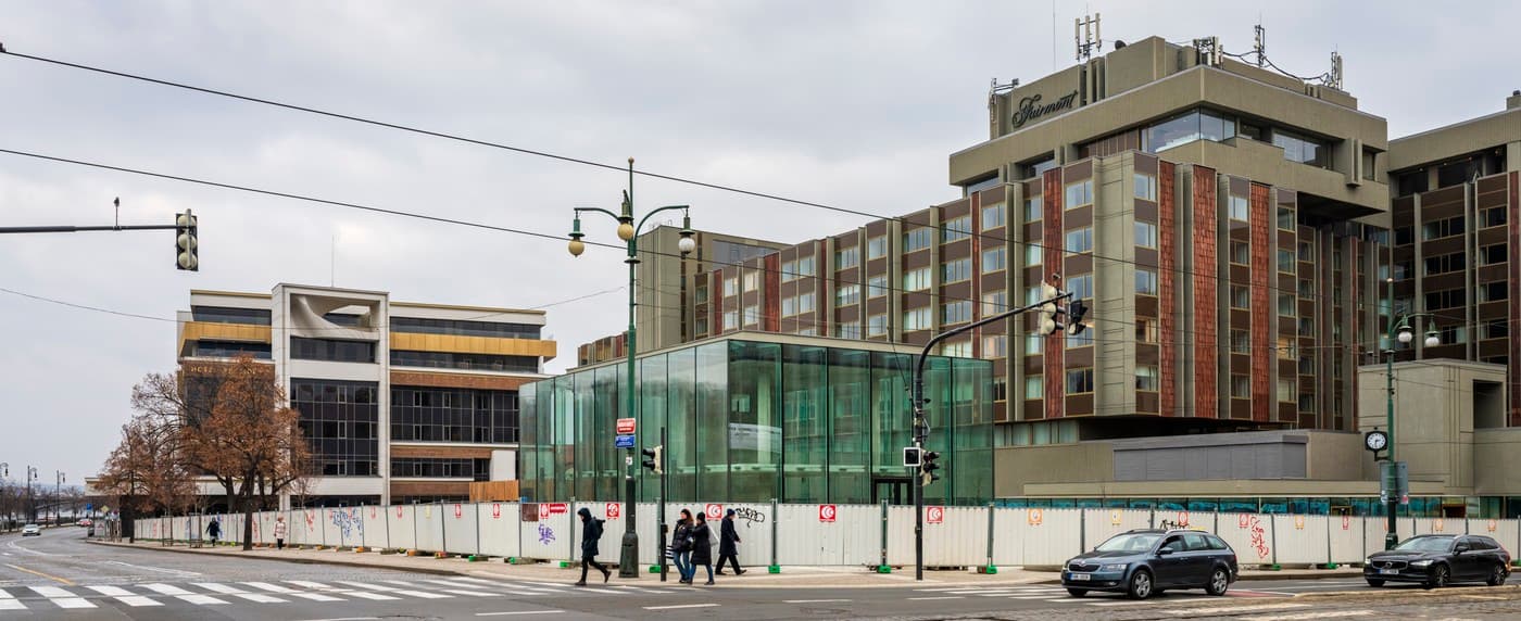 Hotel InterContinental ve vlastnictví kanceláře R2G podnikatelů Oldřicha Šlemra, Eduardy Kučery a Pavla Baudiše se rekonstruoval od roku 2021, otevřít se má letos na jaře. Součástí projektu, který architekt Marek Tichý nazval Staroměstská brána, byly dvě prosklené novostavby. Proti té větší, kterou by architekti umístili na náměstí Miloše Formana s pracovním názvem Brand Store, se zdvihl odpor a proti stavbě se postavila ministerstva kultury a místního rozvoje. Druhá, postavená blíže Vltavě a pojmenovaná Concept Store, pozornosti unikala.