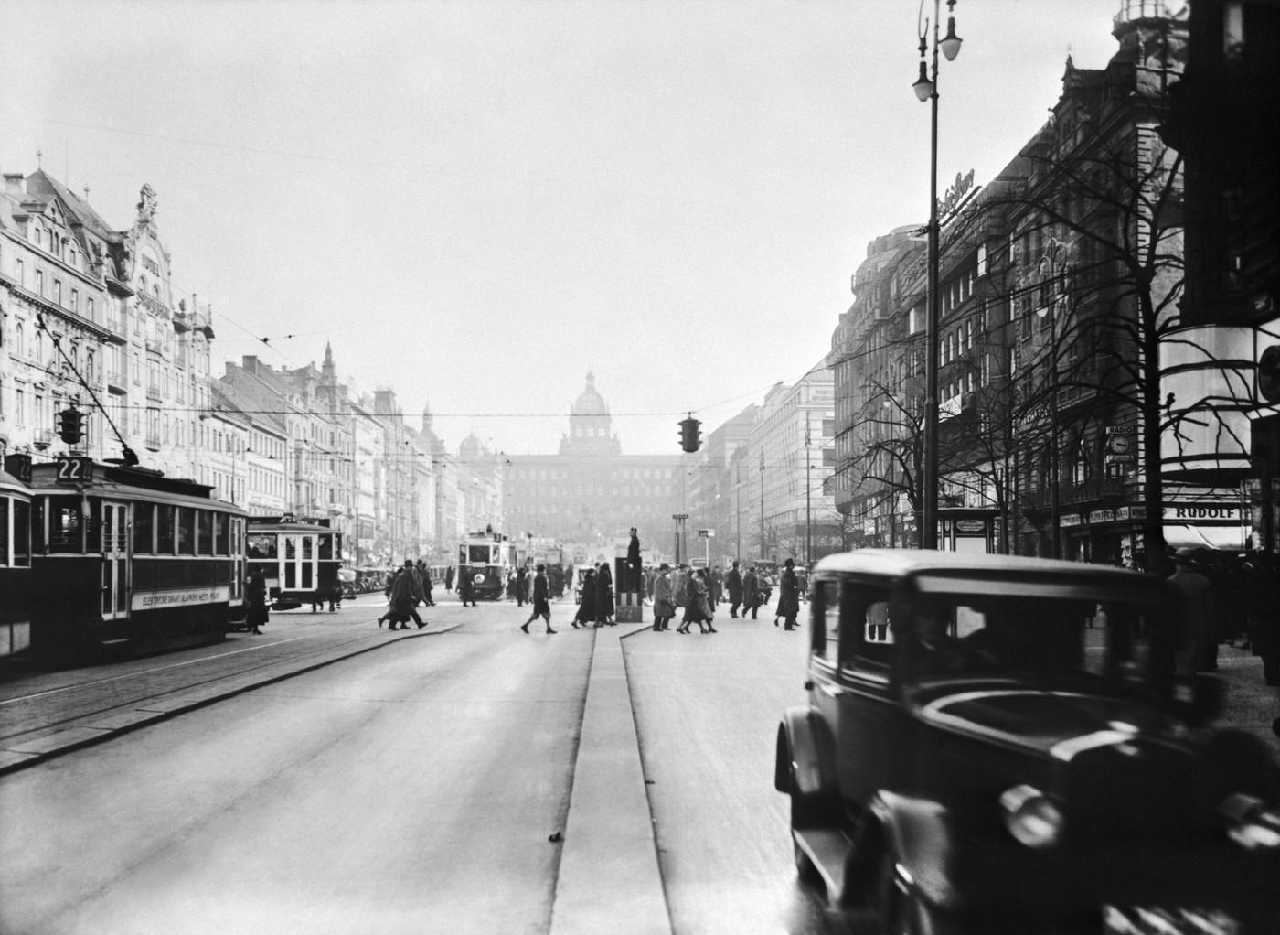 Třetí semafor se v Praze objevil v dubnu 1930 na dolním konci Václavského náměstí, na křižovatce Můstek. A brzy následovala další návěstidla v centru Prahy a přilehlých oblastech, která byla buď zavěšená nad jízdní dráhou, nebo postavená na kovovém stožáru uprostřed křižovatky. Když na začátku protektorátu zavedli Němci již dlouho chystanou jízdu vpravo, prošel výraznou proměnou i systém světelné dopravní signalizace v Praze. Původní čtyřsměrová návěstidla - byla tehdy na 33 křižovatkách - se většinou z centrální polohy nad křižovatkou přesunula na sloupy před ní, objevily se už i kombinace se semafory pro chodce.