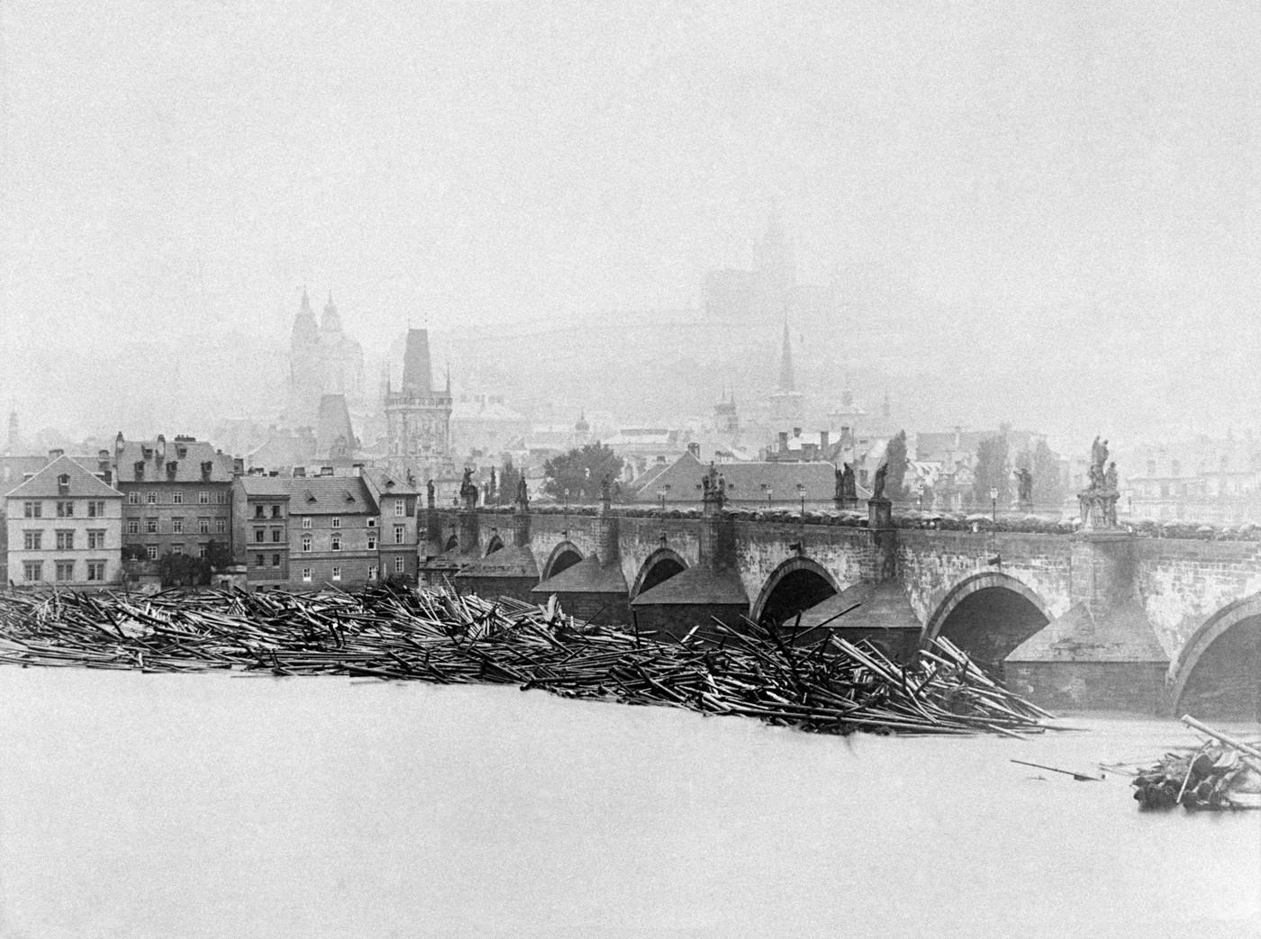 O půl šesté ráno 4. září nevydržel nápor vody a nahromaděných trosek Karlův most. Nejprve spadly dva oblouky a o půl desáté dopoledne se zřítil třetí, vyvráceny byly dva pilíře. Zahynulo při tom několik lidí. Most pobořila povodeň před tím naposledy před sto lety v únoru 1784, kdy stržené vory a ledy ucpaly oblouky, voda podemlela a silně poškodila pět pilířů a jedno přední záhlaví pilíře spadlo i s vojenskou strážnicí. Velké vodě v letech 1872 a 1845 však most odolal.