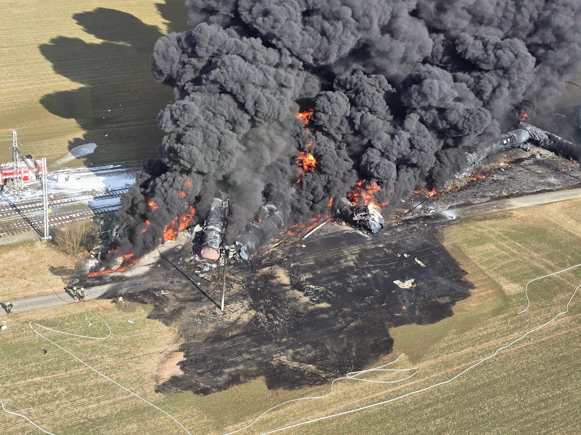 Vlak, který převážel cisterny, v nichž bylo více než 1000 tun karcinogenního benzenu, vykolejil a začal hořet v pátek před polednem. Převážený benzen byl vyroben z benzolu právě ve firmě DEZA ve Valašském Meziříčí na Vsetínsku. Heřmanský už dříve řekl, že benzen z chemičky přepravoval soukromý dopravce. Policie událost zatím prověřuje pro podezření z obecného ohrožení z nedbalosti. Odhadovanou škodu vyčíslila na 120 milionů korun, hasiči na 125 milionů korun.