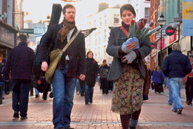 John Carney ale také natočil film svým způsobem velice sebevědomý, přesvědčen o tom, že jeho protagonisté mají, jak se za oceánem píše, star power, schopnost rozsvítit plátno pouhou přítomností. Bez toho přesvědčení by asi nezařadil do svého snímku několikaminutový záběr na Markétu Irglovou, jak jde po ulici a v duchu textuje Hansardovu písničku, kterou poslouchá z diskmanu. Člověku to může připomenout slavnou scénu z Malleova Výtahu na popraviště, v níž Jeanne Moreauová jde také velmi dlouho ulicí, kde hledá ztraceného milého. Formálně ty dva záběry jsou velice odlišné – jeden v elegantní černobílé s dobře oblečenou a krásnou etablovanou hvězdou, druhý v barvách laciného videa s naprosto neznámou dívkou z Česka v županu a bačkorách. V obou těch záběrech je ale cítit stejná jistota: z téhle holky by všichni v kině měli padnout na zadek. Padnou skutečně? Jak kteří.