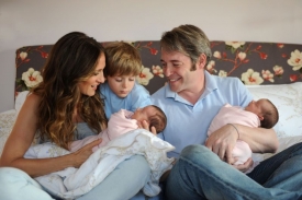 Na fotografii, pořízené v pondělí v New Yorku, šťastní rodiče drží v náručí své dcerky, které dostaly jména Marion Loretta Elwell a Tabitha Hodge. Na snímku je i jejich šestiletý syn James Wilkie.