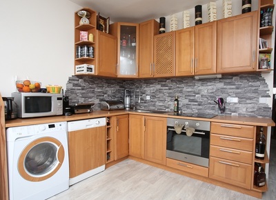 Kuchyně je moderní a jednoduchá.