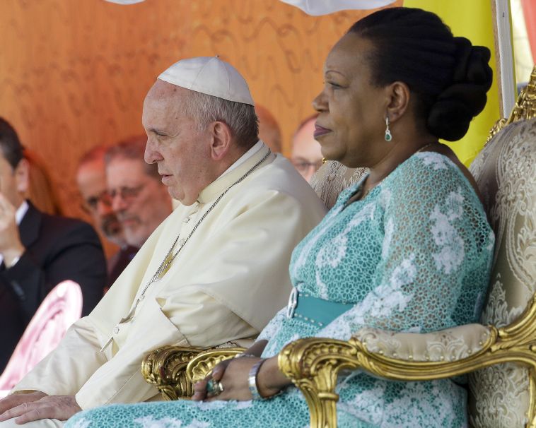 Prezidentka Catherine Sambová-Panzová požádala před papežem o "odpuštění" za všechno zlo, kterého se obyvatelé Středoafrické republiky dopustili při sektářském násilí. "Jménem celého vedení této země, ale i všech těch, kteří přispěli k její cestě do pekel, se zpovídám ze všeho dřívějšího zla a žádám z hloubi srdce o odpuštění. Rozhodně potřebujeme toto odpuštění," prohlásila politička při setkání s Františkem v prezidentském paláci.