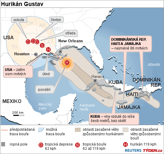 Pobřeží Spojených států bičuje déšť a vítr hnaný hurikánem Gustav. New Orleans opět po třech letech připomíná město duchů. Nucená evakuace je u konce, statisíce lidí prchly do vnitrozemí.
