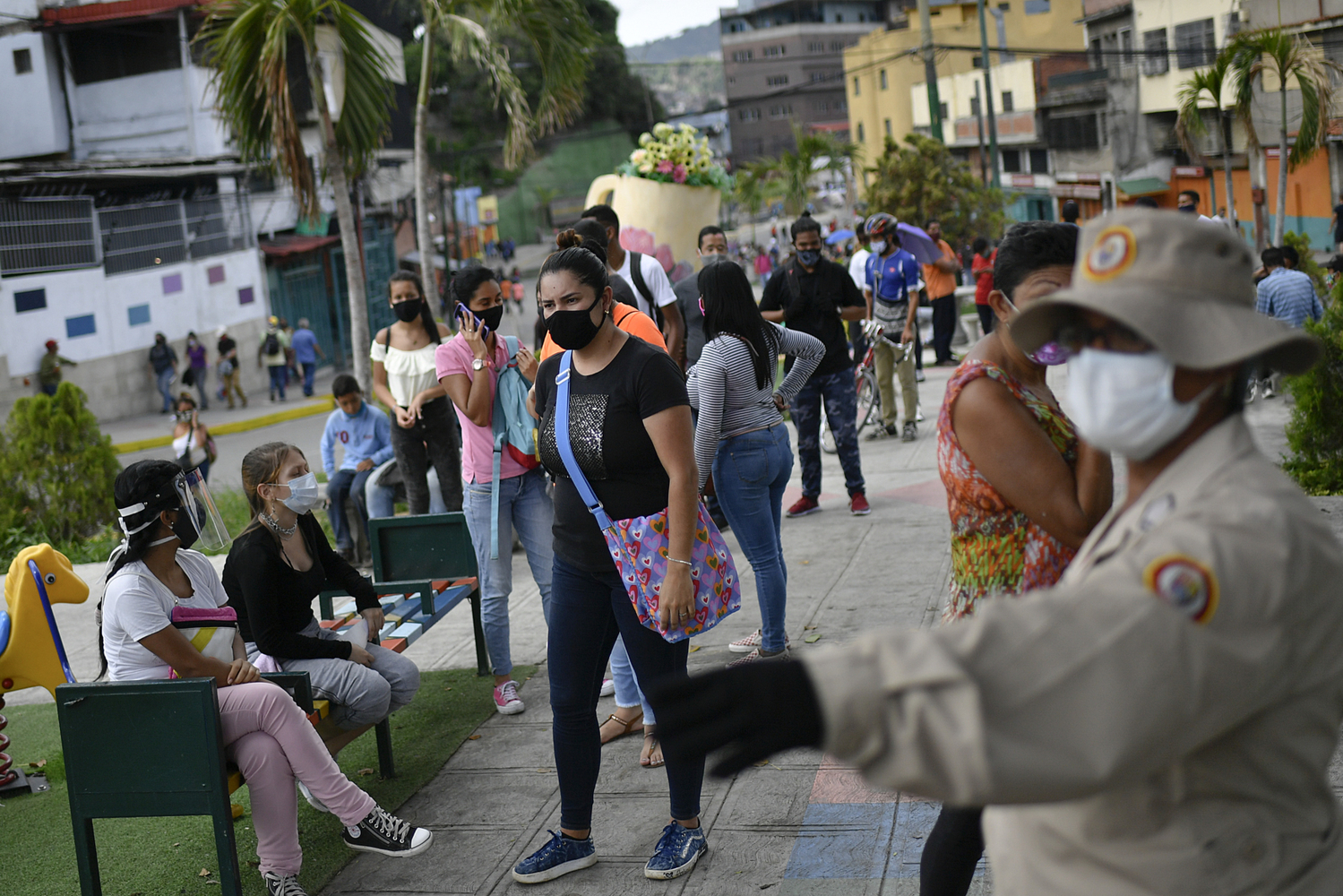 Na dalším videu natočeném ve městě Guásimos (rovněž stát Táchira) dělají tři mladíci na místním hřišti kliky. Přitom na ně dohlíží policista, po němž musí opakovat, jakého prohřešku se dopustili. "Neměl jsem být na ulici, mám zůstat doma, policie jednala podle prezidentského dekretu o pandemii covidu-19," opakují mladíci v rouškách při cvičení.