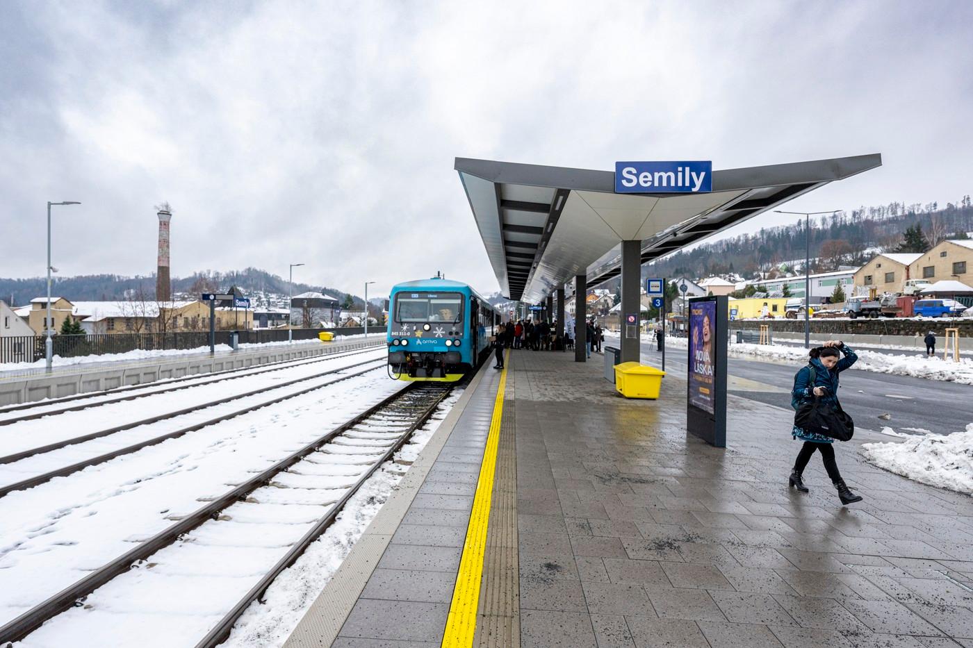 Rekonstrukci železničního nádraží v Semilech dokončila Správa železnic loni v říjnu. Modernizovala nádražní budovu, koleje i nástupiště. Autobusové nádraží se čtyřmi zastávkami a 50 parkovacími místy pro auta v režimu P+R město letos postavilo na druhé straně nástupiště, které tak bude společné pro vlaky i autobusy.