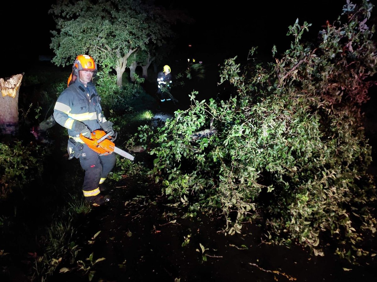 V Královéhradeckém kraji měli hasiči k 03:00 víc než 40 zásahů. Nejvíc práce měli v Mlázovicích na Jičínsku s odklizením naplavenin, uvedli na síti X.