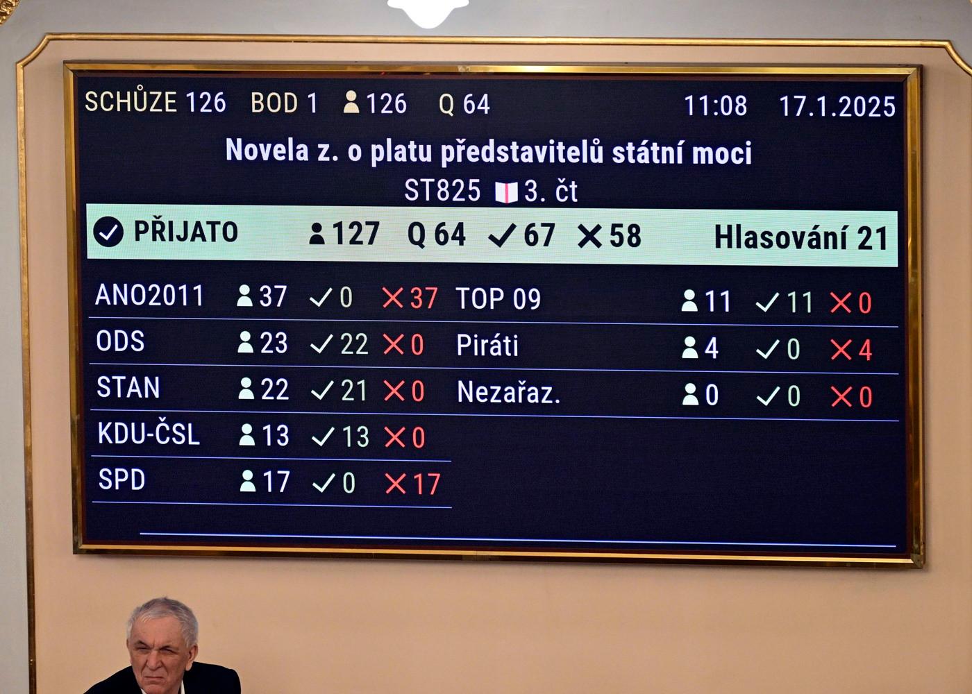 Sněmovna dnes schválila spornou novelu, podle níž letos vzrostou platy vrcholných politiků téměř o sedm procent. Do budoucna se mají podle přijatého pozměňovacího návrhu meziročně zvyšovat nejvýše o pět procent. Opoziční hnutí ANO a SPD neprosadila zmrazení platů politiků až do roku 2029 na loňské úrovni. Soudcovské platy by se měly letos v porovnání s loňskem zvýšit o méně než jedno procento, vyplývá z předlohy, která teď zamíří k posouzení do Senátu.