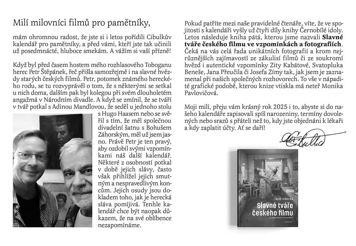 Do pondělí 10. března 2025 soutěžíme o 5x Cibulkův kalendář pro pamětníky 2025 a knihu Slavné tváře českého filmu ve vzpomínkách a fotografiích