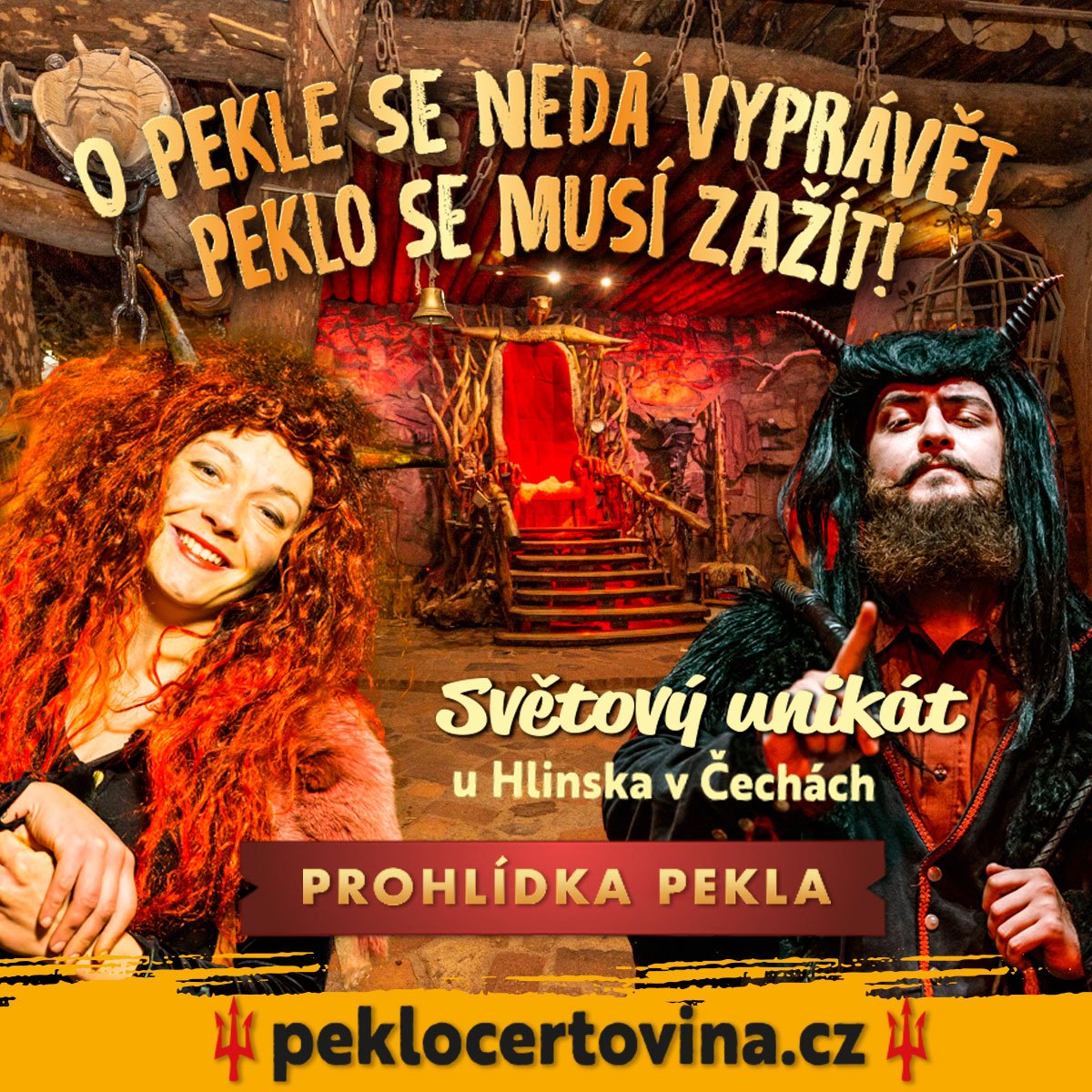 Do středy 13. srpna 2025 soutěžíme o 2x poukaz do Pekla Čertovina na prohlídku Pekla se zábavným programem (1 dospělí + 1 dítě).