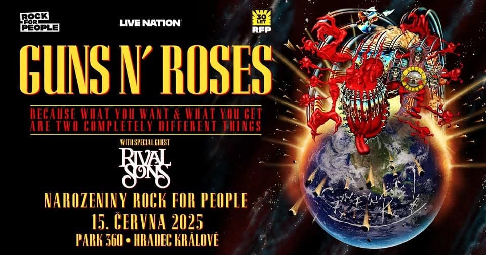 Legendární americká rocková kapela Guns N’ Roses je hlavní hvězdou přidaného Narozeninového dne po festivalu Rock for People, který se letos koná u příležitosti jeho 30. výročí. Speciální koncert této ikonické kapely proběhne v neděli 15. června 2025 v Parku 360 v Hradci Králové a slibuje nezapomenutelný zážitek pro všechny fanoušky.