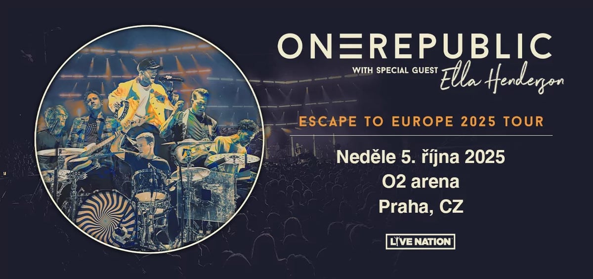 Americká pop rocková kapela OneRepublic, nominovaná na cenu GRAMMY®, vystoupí v rámci svého „Escape to Europe“ 2025 Tour v neděli 5. října 2025 v pražské areně.