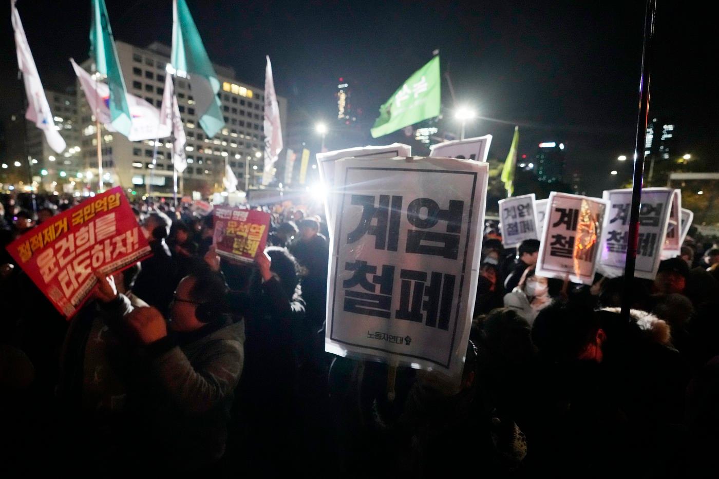 Vůdce opozice I Če-mjong podle agentury Reuters řekl, že každý, kdo jedná na příkaz prezidenta Jun Sok-jola, porušuje zákon, stanné právo je podle vůdce opozice neplatné. Vojáci nadále zůstávají podle aktuálních záběrů před budovou parlamentu, poslanci zůstávají uvnitř.