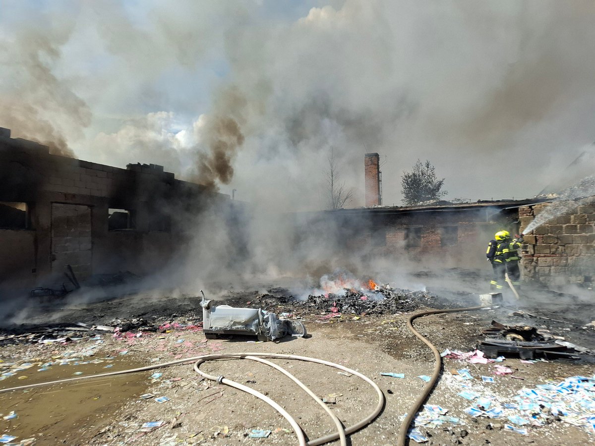 Hasiči podle něj postupně lokalizují ohniska požáru na větší ploše a vodní clonou chrání okolní přilehlé stavby. "Na místě vypomáhá manipulační technika vlastníka a vyváží hořící odpad k dohašování na volné ploše," dodal Hošák. Příčinu požáru na místě zjišťuje vyšetřovatel hasičů a policie.