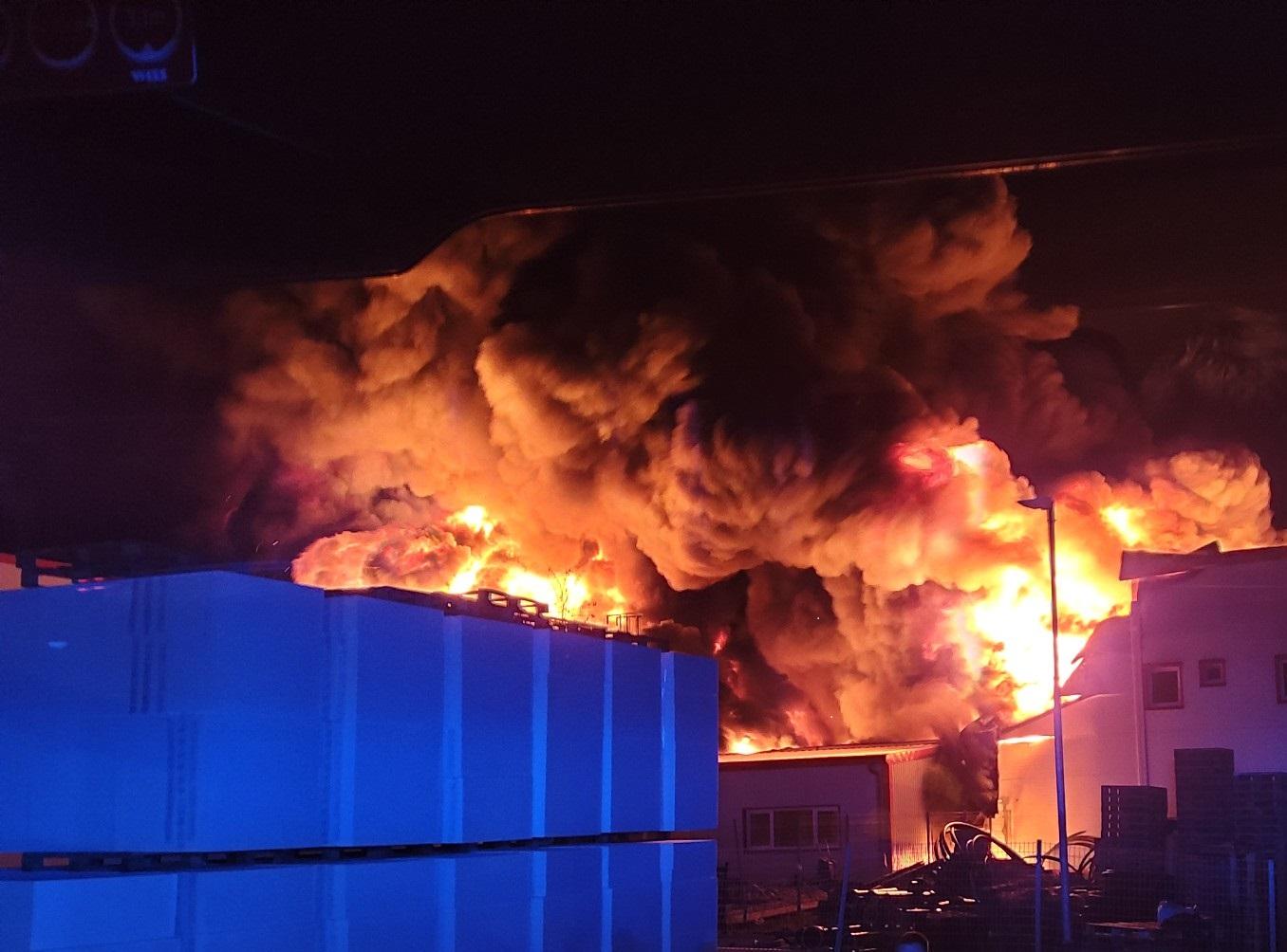 Požár byl nahlášen v pátek po 23:30. Mobilní laboratoře v okolních obcích nenaměřily zvýšené hodnoty nebezpečných látek v ovzduší. Z haly v noci po příjezdu hasičů odešlo 13 lidí. Podle policie byl jeden člověk lehce zraněn a na místě ošetřen zdravotníky.