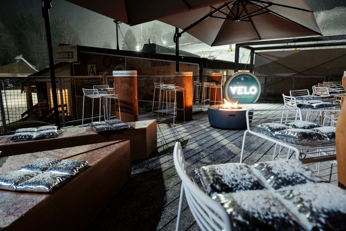 Pokud hledáte místo pro dokonalý „reset“ mezi jízdami na svahu, celoroční VELO terasa je pro vás tím pravým útočištěm. Atmosféra hor vás zde pohltí, ať už si chcete jen vydechnout s drinkem v ruce, nebo se rovnou naladit na večerní jízdu.